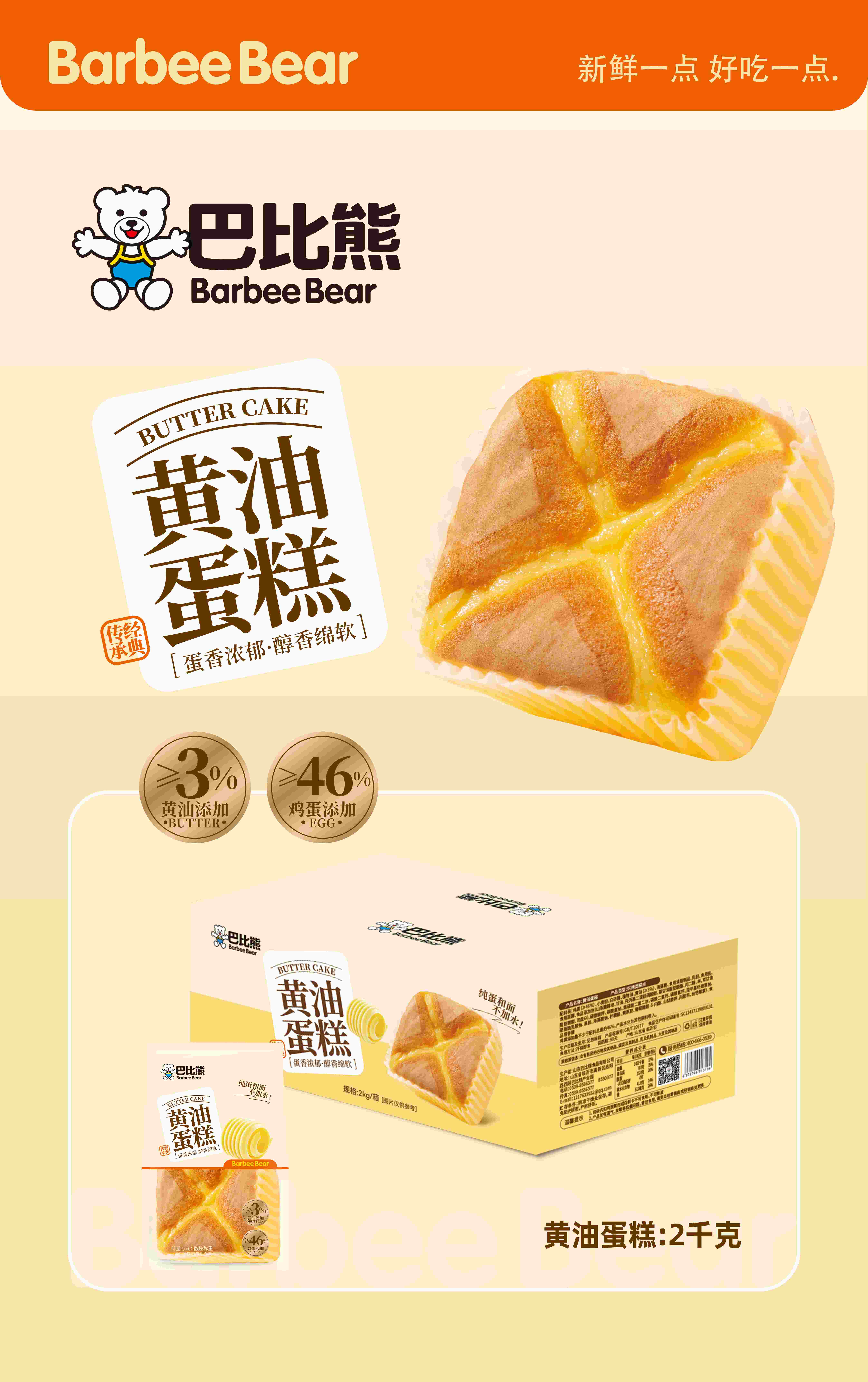 B类糕点4斤巴比熊黄油蛋糕
